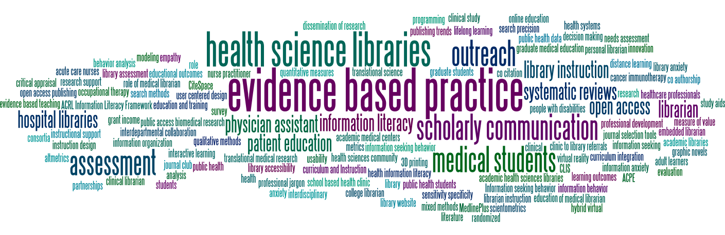 As part of the application process for the MLA Research Training Institute (RTI), applicants submit a list of key words or phrases that describes the topic of their research that year. Below are word clouds of the key words that were submitted to the RTI for each year since 2018. These images visualize the word frequency of the key words from the applications, the larger the word, the more times it was mentioned by the applicants. Word clouds are interesting because they are one way of tracking the current research interests of health sciences librarians. Let us know what you think about these word clouds. Do they reflect your research interests?